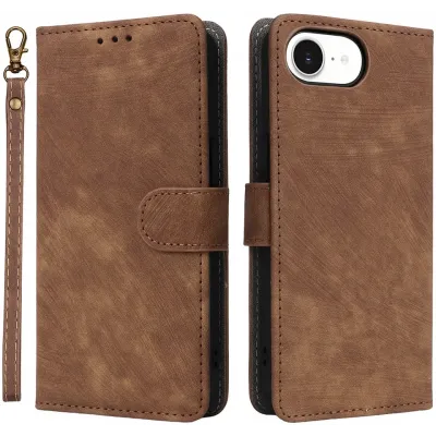 De Phonesta Vintage Skin Book Wallet Case is een stijlvolle en praktische hoes voor jouw Apple iPhone 17e/16e. Dit hoesje is vervaardigd uit hoogwaardig polyurethaan (PU) leer en thermoplastisch polyurethaan (TPU), wat zorgt voor een comfortabele grip en een lange levensduur. De kleur bruin geeft het hoesje een elegante uitstraling, perfect voor zowel dagelijks gebruik als speciale gelegenheden. Met de magnetische sluiting blijft alles veilig opgeborgen, terwijl het meegeleverde koord ervoor zorgt dat je je telefoon altijd bij de hand hebt.