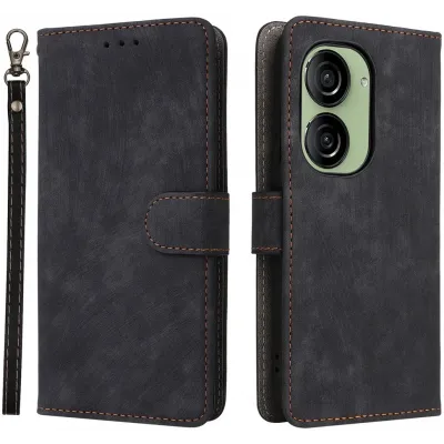 Phonesta Vintage Skin Book Wallet Case hoesje voor Asus Zenfone 10 - Zwart