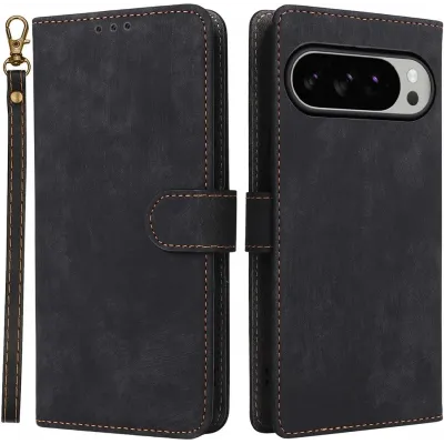 • Phonesta Vintage Skin Book Wallet Case hoesje voor Google Pixel 10 Pro XL - Zwart