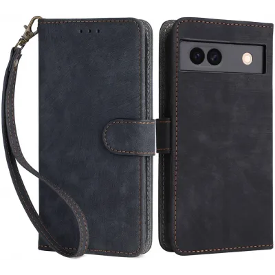 • Phonesta Vintage Skin Book Wallet Case hoesje voor Google Pixel 8a - Zwart