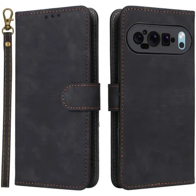 Phonesta Vintage Skin Book Wallet Case hoesje voor Google Pixel 9 Pro XL - Zwart