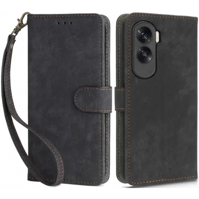 Phonesta Vintage Skin Book Wallet Case hoesje voor HONOR 90 Lite - Zwart
