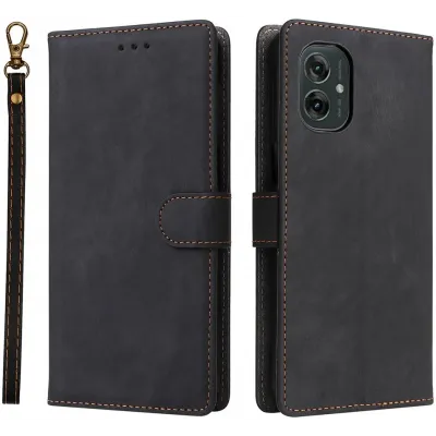 Phonesta Leather Vertical Flip Wallet Case hoesje voor Motorola Moto G55 - Zwart