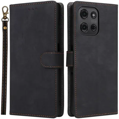 • Phonesta Vintage Skin Book Wallet Case hoesje voor Motorola Moto G75 - Zwart