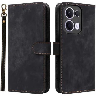 Phonesta Vintage Skin Book Wallet Case hoesje voor Oppo Reno13 Pro - Zwart