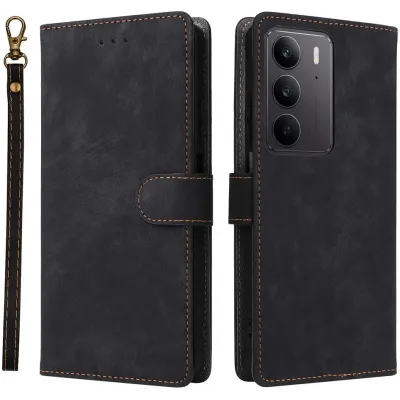 De Phonesta Vintage Skin Book Wallet Case is een stijlvolle en praktische hoes voor jouw Realme 14x / C75. Dit hoesje is vervaardigd uit hoogwaardig polyurethaan (PU) leer en thermoplastisch polyurethaan (TPU), wat zorgt voor een comfortabele grip en een lange levensduur. De kleur zwart geeft het hoesje een elegante uitstraling, perfect voor zowel dagelijks gebruik als speciale gelegenheden. Met de magnetische sluiting blijft alles veilig opgeborgen, terwijl het meegeleverde koord ervoor zorgt dat je je telefoon altijd bij de hand hebt.