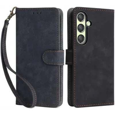 • Phonesta Vintage Skin Book Wallet Case hoesje voor Samsung Galaxy S24 - Zwart