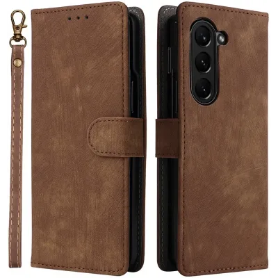 Phonesta Vintage Skin Book Wallet Case hoesje voor Samsung Galaxy Z Fold 6 - Bruin