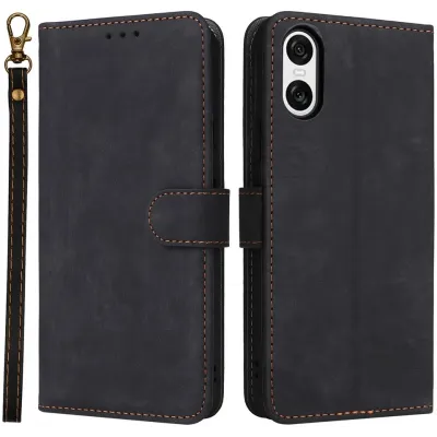 Phonesta Vintage Skin Book Wallet Case hoesje voor Sony Xperia 10 VI - Zwart