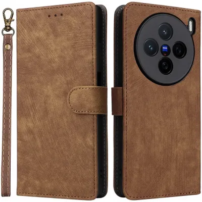 Phonesta Vintage Skin Book Wallet Case hoesje voor Vivo X200 - Bruin