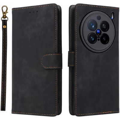Phonesta Vintage Skin Book Wallet Case hoesje voor Vivo X200 Pro - Zwart