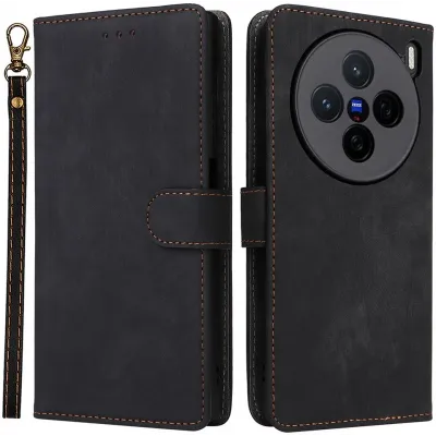Phonesta Vintage Skin Book Wallet Case hoesje voor Vivo X200 - Zwart