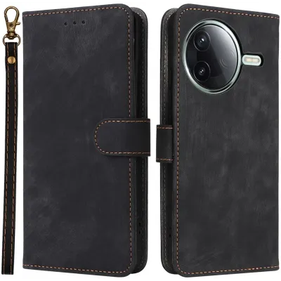 Phonesta Vintage Skin Book Wallet Case hoesje voor Xiaomi Poco F7 Pro/F7 Ultra - Zwart