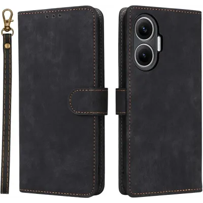 Phonesta Vintage Skin Book Wallet Case hoesje voor Xiaomi Poco F7 - Zwart